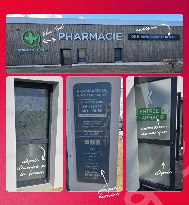 ️ Fabrication et pose d’enseignes pour la pharmacie de Buron à Saint-Contest.